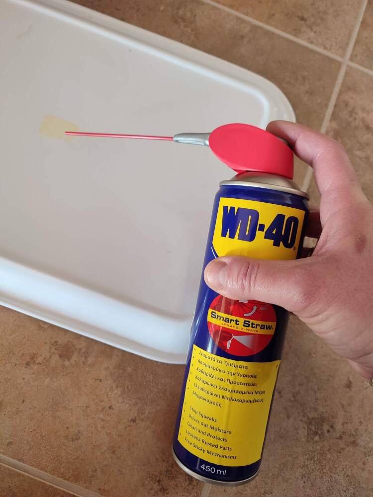 Αφαιρώ εύκολα όλα τα υπολείμματα αυτοκόλλητου από όλες τις επιφάνειες με τη χρήση του WD-40.